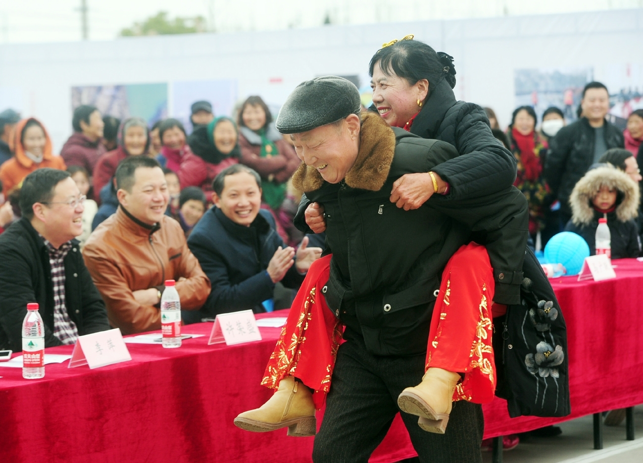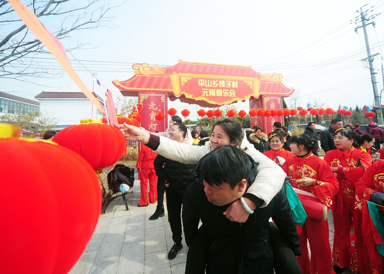 老公背着老婆跑、婆婆比划儿媳猜……昨天,一场特殊的闹元宵活动,在蜀冈-瘦西湖风景名胜区平山乡槐子村举行。元宵节也被称作中国情人节,昨天,平山乡举办首届乡村爱情文化节,来自平山乡6个社区、村的村民,欢聚槐子村文化广场,通过互动游戏,演绎夫妻情、婆媳情、亲子情,作为“乡村爱情节”主打的“好丈夫背媳妇”比赛,更是引得现场观众一阵阵高呼。