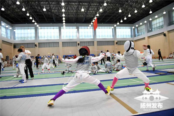 今天上午,2019宋夹城杯·扬州运河文化旅游度假区全国击剑俱乐部大奖赛开幕。比赛在宋夹城综合球类馆举行,此次赛事是扬州市体育局后省运时代为推广全民健身工作以及打造扬州本土化赛事IP的一次里程碑,同时也是一次全国各地击剑人才的文化交流活动。比赛分为团体赛和个人赛,从今天上午至明天下午,来自全国的670名选手参加比赛。