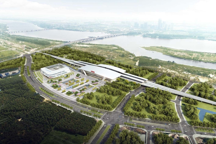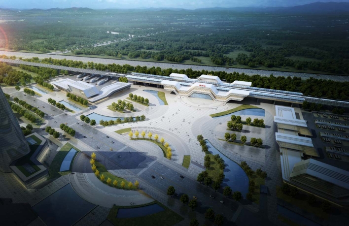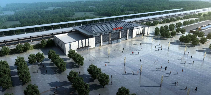 扬州东站位于生态科技新城核心区,为高架站,设计年旅客发送量250万人次,造型简洁、大气,极富地方特色。