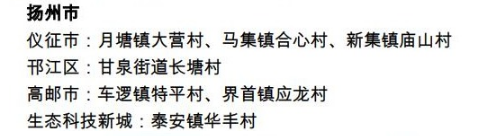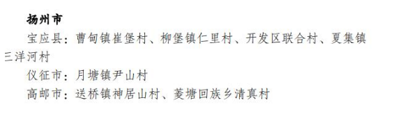 根据公布名单显示,获批的乡村涵盖了宝应县、仪征市、高邮市、邗江区、生态科技新城。