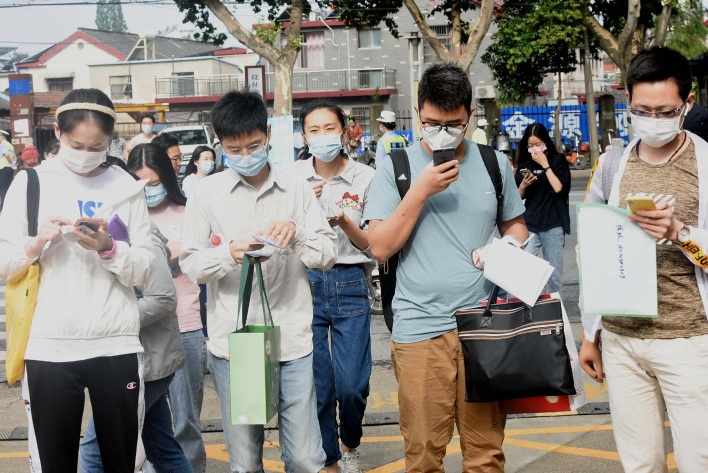 记者在各考点看到,考生都自备了一次性医用口罩或无呼吸阀的N95口罩,除身份确认环节需摘除口罩以外,其余时间都全程佩戴,做好个人防护。