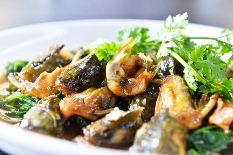方巷镇沿湖村有“舌尖上船家菜”的美誉。每道菜以邵伯湖中盛产的龙虾、螃蟹、甲鱼、银鱼、长鱼、鳗鱼等特种水产为主料,讲究“味真”,用打渔人独特的烹饪技术制作,多用活杀、活炝、清蒸、白煮等方法精心烹制。