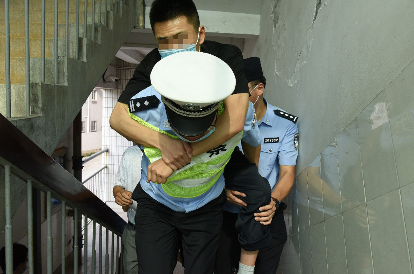 民警背考生上楼。葛学涛 摄