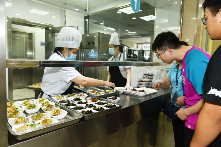 “自今年6月份以来,我们就开始推行分餐制,提供小份餐食,米饭、例汤实行半自助模式,按需食用。”朱春荣介绍,“这样的方式下,不仅菜品数量变多了,大家选择余地也变大,最重要的是减少了餐品浪费。”