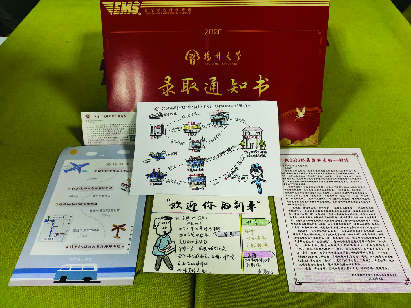 记者昨从扬州大学了解到,目前扬大首批本科生录取通知书已全部寄出。值得一提的是,今年该校不少学院都在录取通知书上花了心思,除了入学须知、资助政策手册等常规物品外,各学院还为新生们准备了诚意满满、创意十足的小礼物。