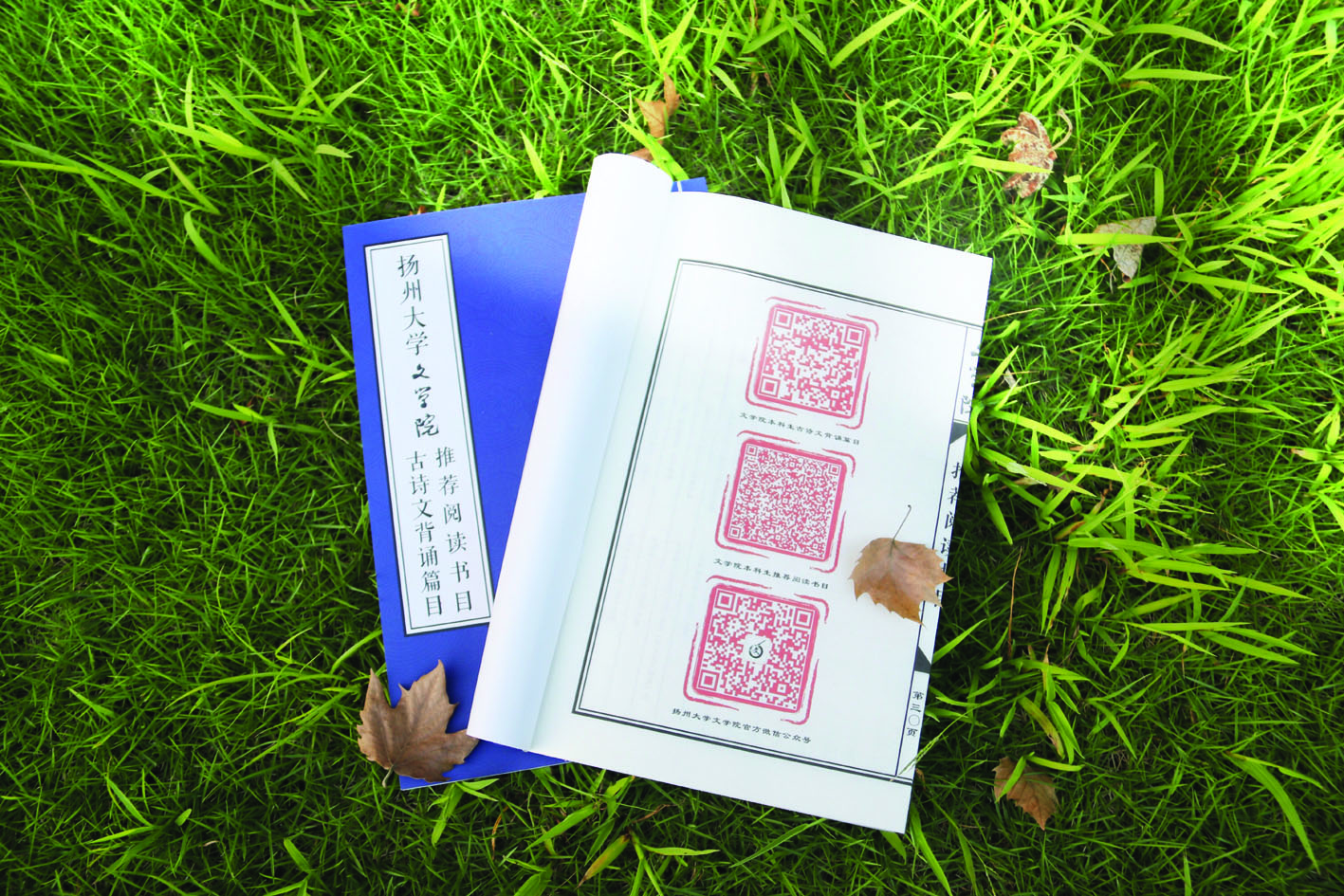 在扬州大学文学院录取通知书装袋现场,一册“线装书单”引起了记者的注意。文学院制作的这份新生专属“线装书单”使用“四针眼装”技法,做工设计十分考究,书口左开,瓷青色的书衣分置书册前后。