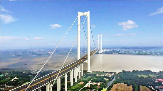 据介绍,龙潭长江大桥北起仪征境内江北长江大堤,向南跨越长江,经南京龙潭,止于与338省道交叉处。路线全长4.92公里,按双向6车道高速公路标准建设,设计行车速度100公里/小时,建设工期5年。龙潭长江大桥采用主跨1560米钢箱梁悬索桥,一跨跨过江面,主跨跨径位居世界第九。南塔高237.5米、北塔高235.5米。