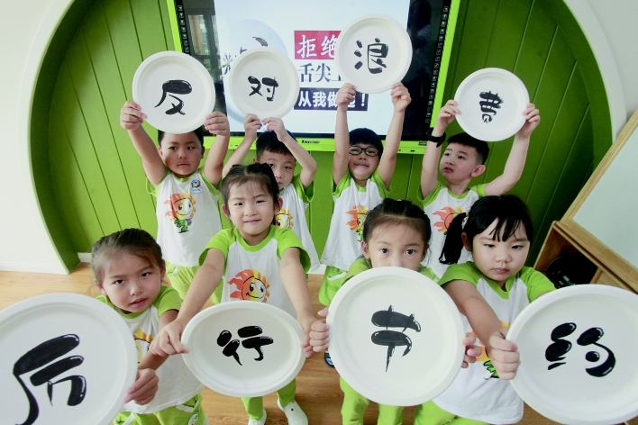 扬州大学附属西郡幼儿园开展“厉行节约 反对浪费”开学第一课。 丽娟 缪惠 德龙 摄