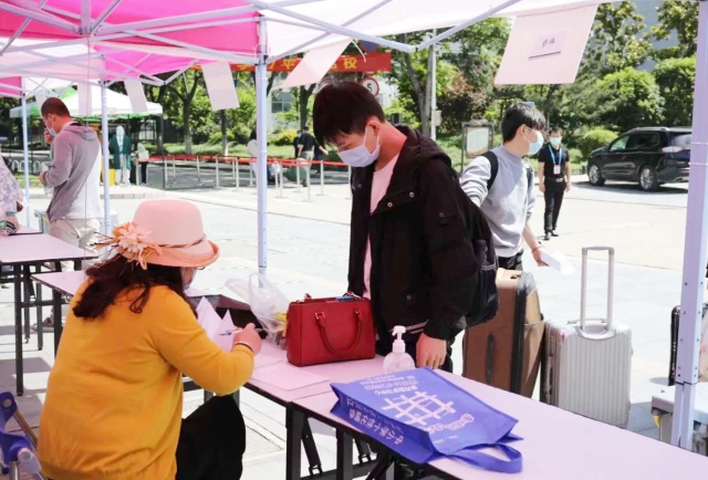 “上月底第一批学生返校,到9月6日老生返校完毕。”江苏旅游职业学院学工处相关负责人透露,为确保返校秩序,学校设置了三个返校入口:学校大门入口外,安保人员负责维持交通秩序、为进校学生测体温;入口处,党员突击队严谨有序地确认每名同学的身份信息;报到处,各学院党总支书记、副书记及辅导员、班主任有条不紊地引导学生逐项完成返校手续;各宿舍进口,宿管人员为学生返校把守最后一关,测体温、做登记、提醒同学们要有序进入宿舍。“开学前,我们提醒学生,自备足量的生活学习所需个人防护用品,包括一次性医用口罩或医用外科口罩、一次性手套、消毒酒精棉片或免洗手消毒剂、体温计、纸巾等。”