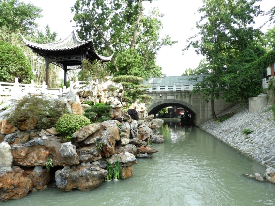 大量的水流从南侧流向北侧,由于上部有山石,南侧北侧有落差,河水便从南侧飞流直下,流向北城河。站在曲桥上,可以感觉到,水声震耳。