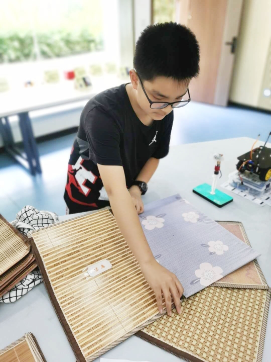 在给席子装拉链时,魏睿哲又考虑到家里人对于凉席的不同要求,设计出了多种组合的凉席,如全凉席、全藤席、半边凉席半边藤席等,让凉席满足不同人群的需求。即使是再小的发明创新,也并非是一蹴而就的。在一次次的实践中,他又想到了对拉链进行改进,让两片凉席不分方向就可以安装。在江都实验小学科技辅导老师杨勇的指导下,设计不断改进。
