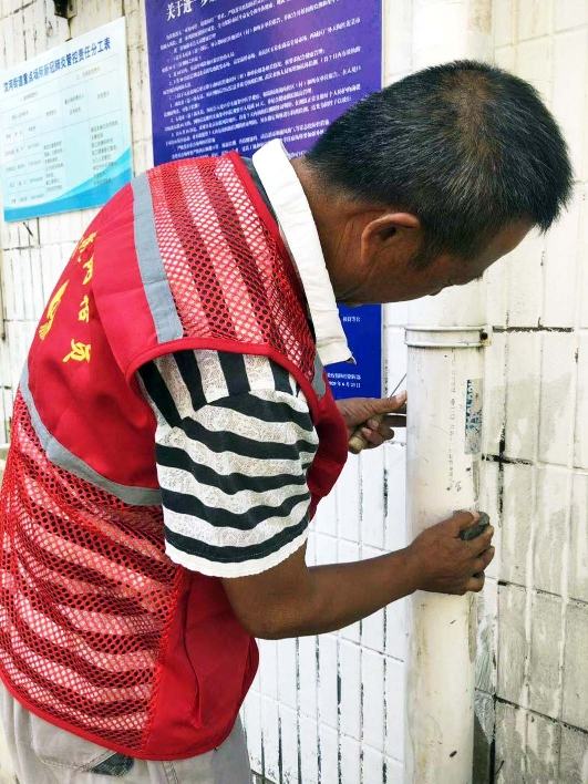 昨天上午,家住广陵区汶河街道石塔社区的戴智才,手拎一只铁桶在小区楼道中穿梭,每遇到墙壁、电线杆、水管上有小广告,他都会短暂停留,拿出一件件“特制”工具开始清除,认真细致且快速高效。