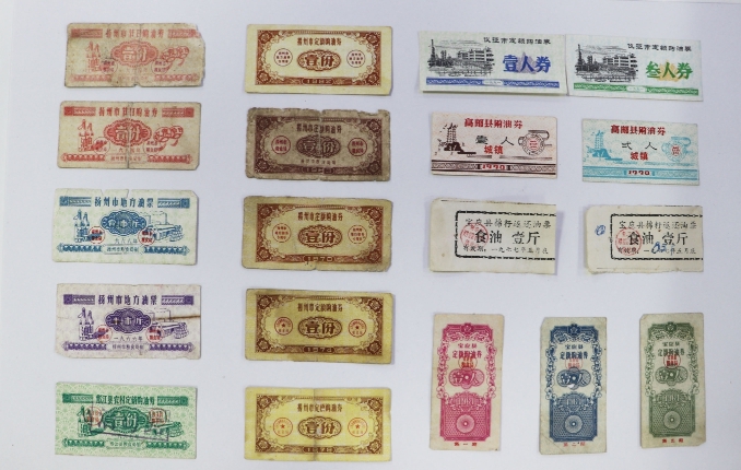 “近来,‘拒绝舌尖上的浪费’成了人们关注和实践的焦点,我对此深有感触。”扬州民间收藏家张玉顺收藏了粮油供应证、粮票、面粉券、油票、饭票等各种有关粮油的票证2万多张(本),“从收藏的粮油票证来看,愈发觉得提倡节俭、反对浪费很有意义。”