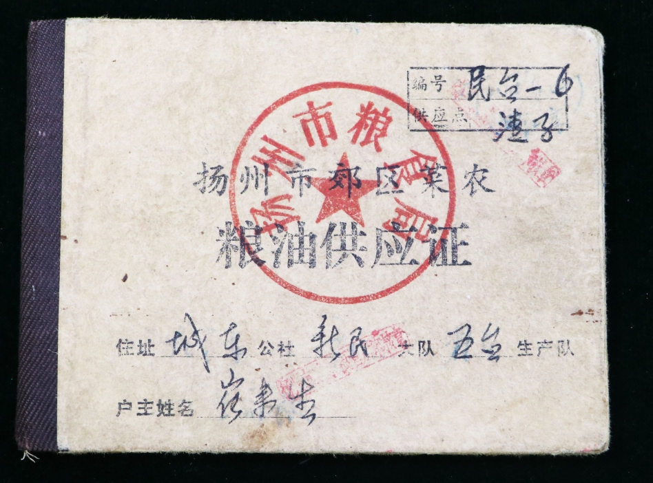在他收藏的票证中,有一种“扬州市郊区菜农粮油供应证”,“因为菜农不种粮食,所以也需要粮票、油票等”。记者看到,其中一本证是1982年的,地址为城东公社新民大队五台生产队,户主是“崔来生”。