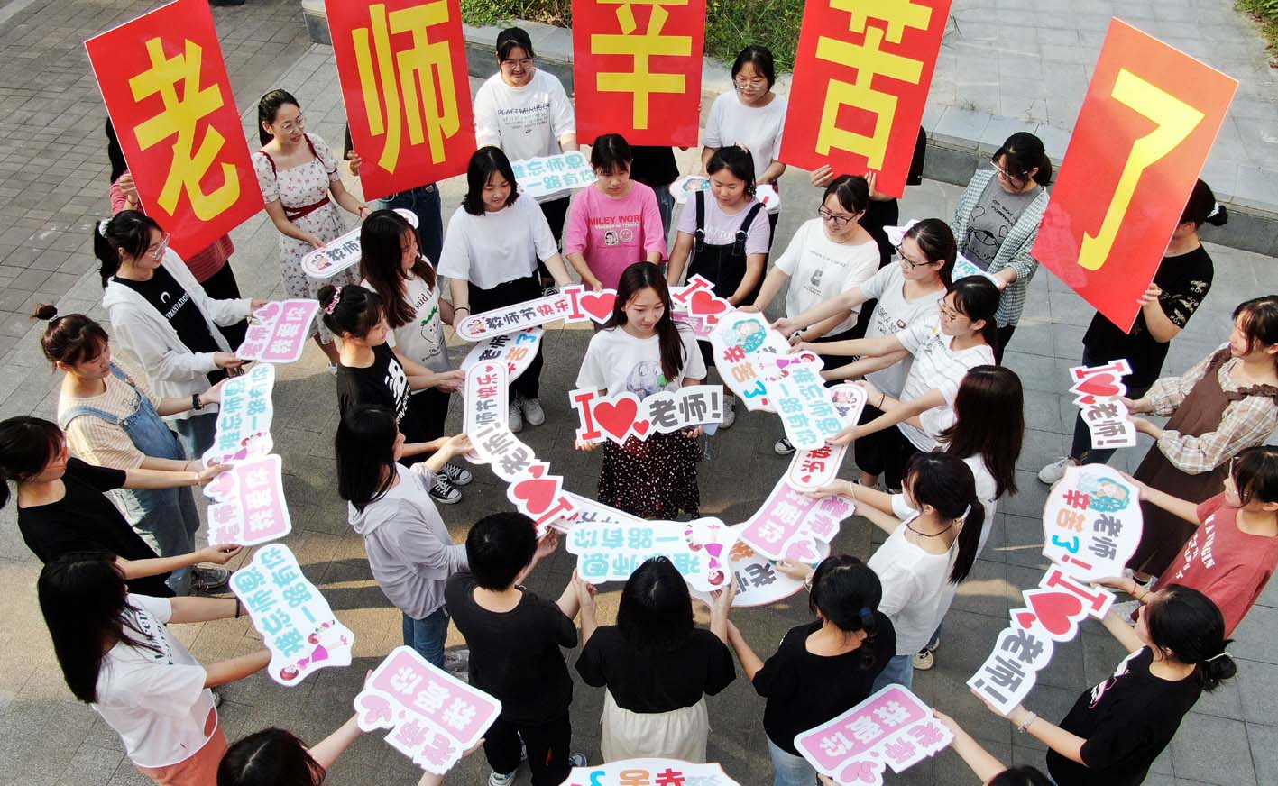 昨日,邗江中等专业学校的学生在校园内开展了“谢师恩,明年我也成为你”主题“快闪”活动,让老师们度过了一个别样的教师节。学前教育专业的学生们用自己的特殊方式表达了对老师的感激之情,也吐露出对自己即将成为老师的向往。据了解,此次“快闪”活动是学生们利用下午放学后的时间筹划排练的。他们说,老师有更多常人不知道的心酸和烦恼,一句“辛苦了”道不尽他们对老师的感谢。