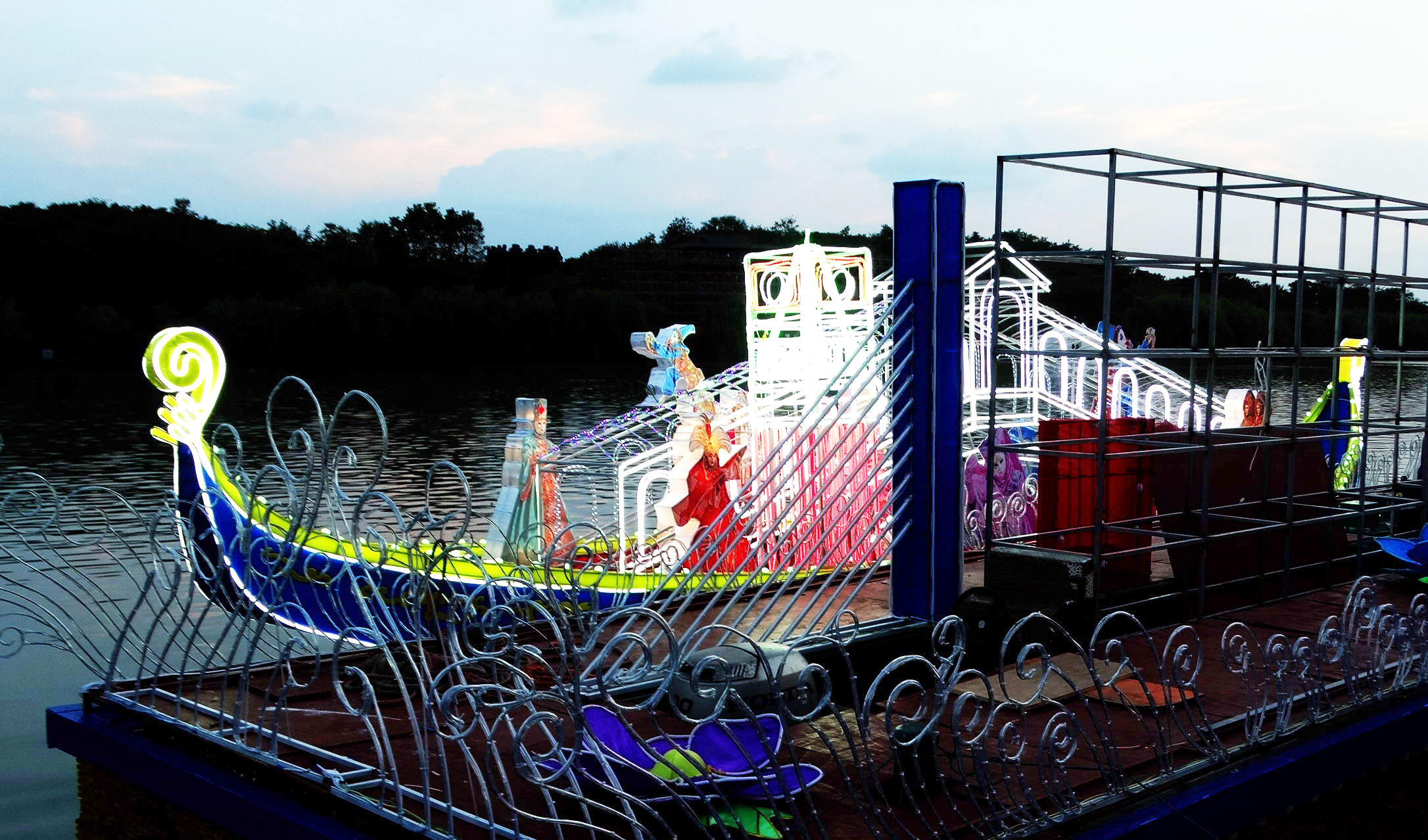 今年的花船以光雕为主