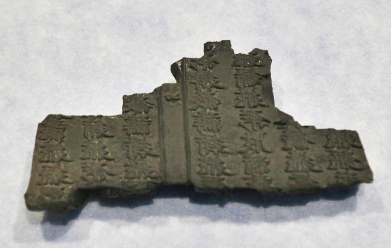 “虽然西夏只存在了190年,但是西夏比较注重发展文化教育,专门设置了复制雕版印刷的官府机构,名叫‘刻字司’,可见西夏对出版印刷特别重视。”讲解员介绍,在展厅入口处,展出了多片已经炭化的西夏文大号字木雕印版,虽然是残块,但上面的文字仍然清晰可见。