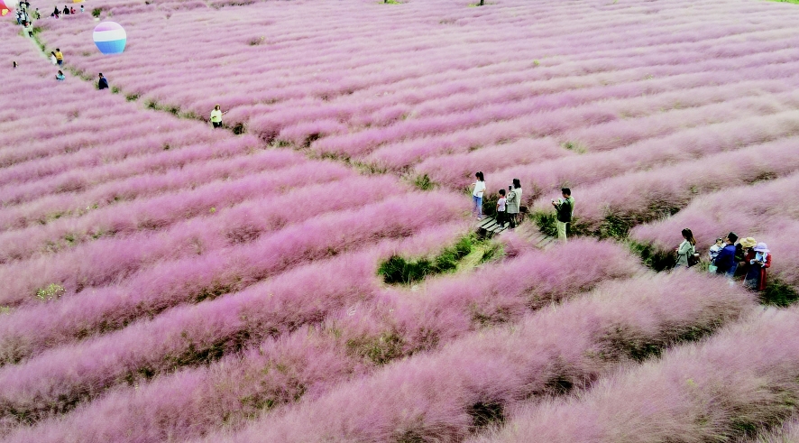 仪征市月塘镇的粉黛乱子草,吸引众多游客前来游玩。 孟德龙 摄