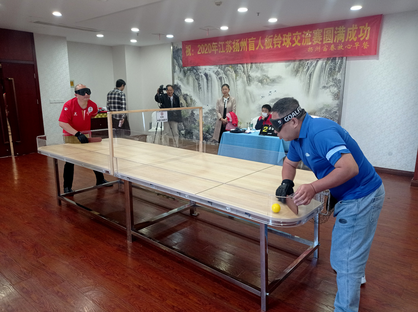 盲人板铃球比赛你见过吗?昨天上午,2020年江苏扬州盲人板铃球交流赛开打,来自深圳、杭州以及东道主扬州的6支代表队、24名盲人板铃球选手参加了此次比赛。这也是我市首次开展盲人板铃球的比赛。