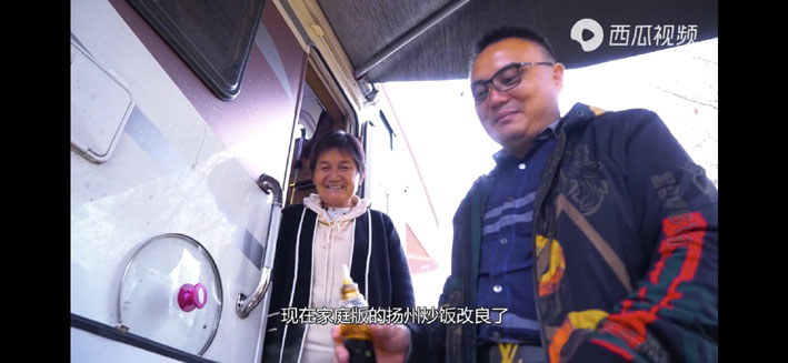 刘志军的妈妈叫王世兰,今年72岁,出生在盐城东台,是地地道道的农民。“这一个多月,我们先到了天津,参观了我曾经就职的总部和工厂,吃了天津的美食,听了相声,然后到北京修整车子。去佳木斯前,因为妈妈说她想吃扬州炒饭,我们就路过了五常。”刘志军说,他带着妈妈在农场驻扎,小住了几天。“我妈妈把当地农民的辛苦看在眼里,就问我能不能帮他们多卖点米?于是,我们临时将抖音昵称改成了‘带着老妈游中国’,把助农作为了帮我妈妈完成的心愿之一。”