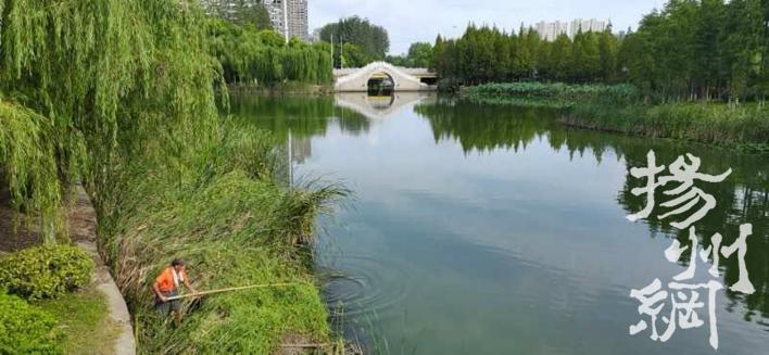 “我们主要负责清理河面的杂草和漂浮的垃圾、树叶等杂物,对河道岸边垃圾、堤坡杂草也会顺带清理。”与记者说话间,周云强将网兜绑在一根长竹竿上,不停地挥动着长长的打捞竿,动作熟练地把水草和垃圾一一打捞至一旁的垃圾桶中,不放过河面上任何一个角落。