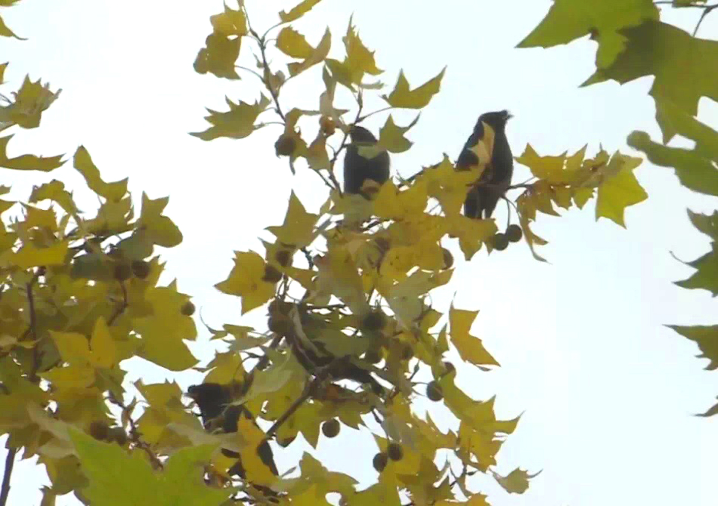 记者昨在现场观察发现,这些鸟通体乌黑色,或在枝头跳跃、或盘旋,场景十分壮观,群鸟聚集嬉闹栖息,叫声清脆悦耳,宛如一场美妙动听的音乐会。