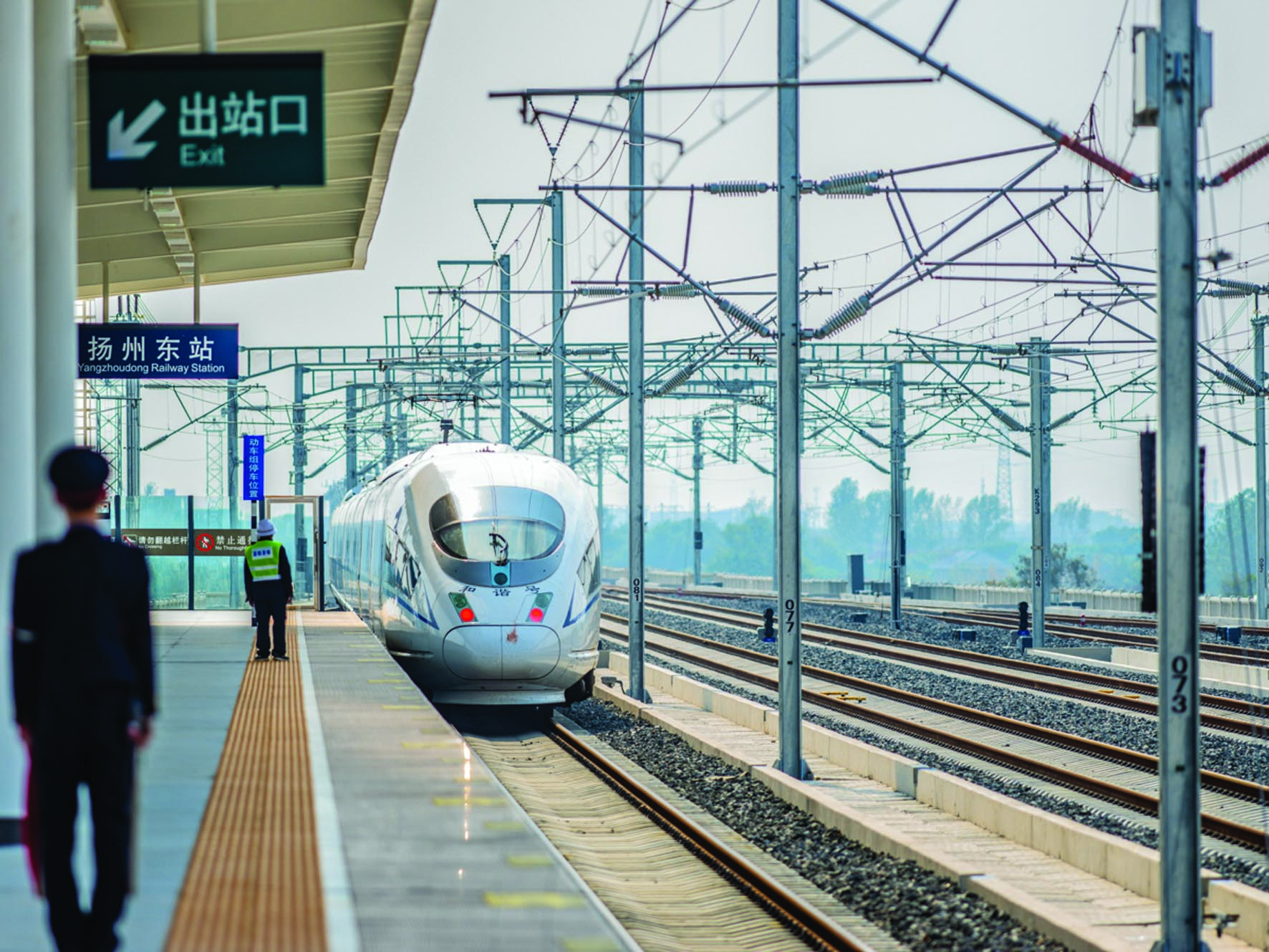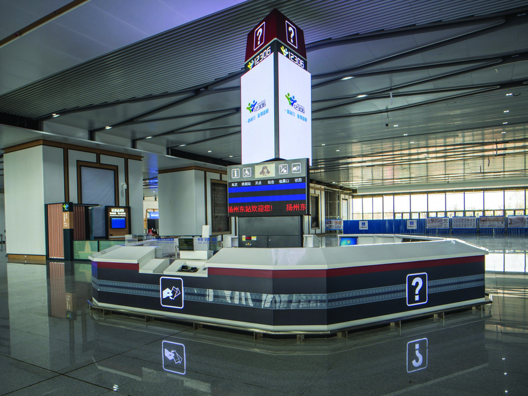 连淮扬镇铁路扬州东站位于扬州市生态科技新城核心区,车站规模为2台6线,站台长650米。扬州东站为高架站,站房为线侧及线下式站房,设计年旅客发送量250万人次。
