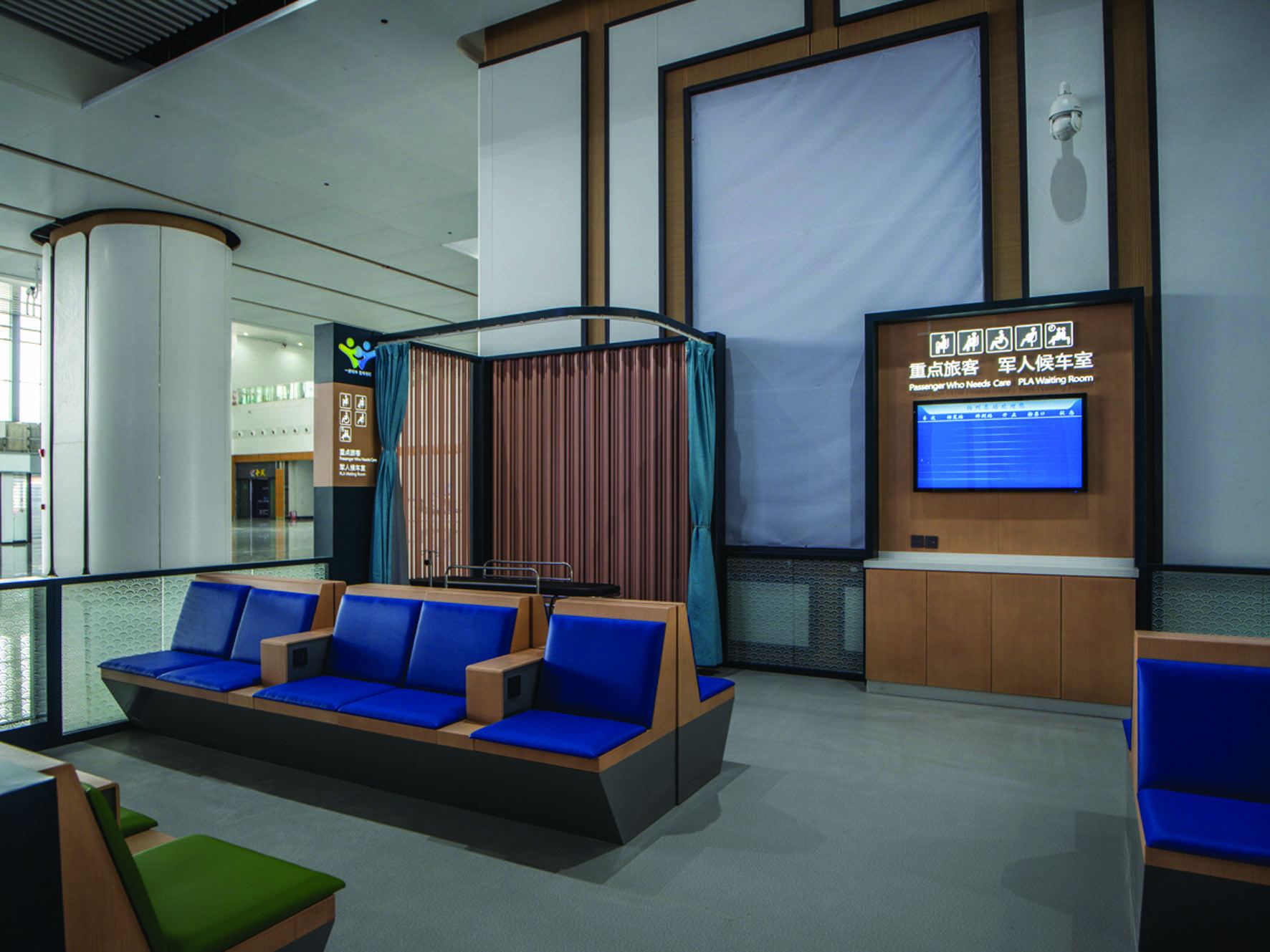 站房造型简洁、大气,极富地方文化特色,一层为候车厅、售票厅及旅客进出站厅,二层为办公及设备用房。