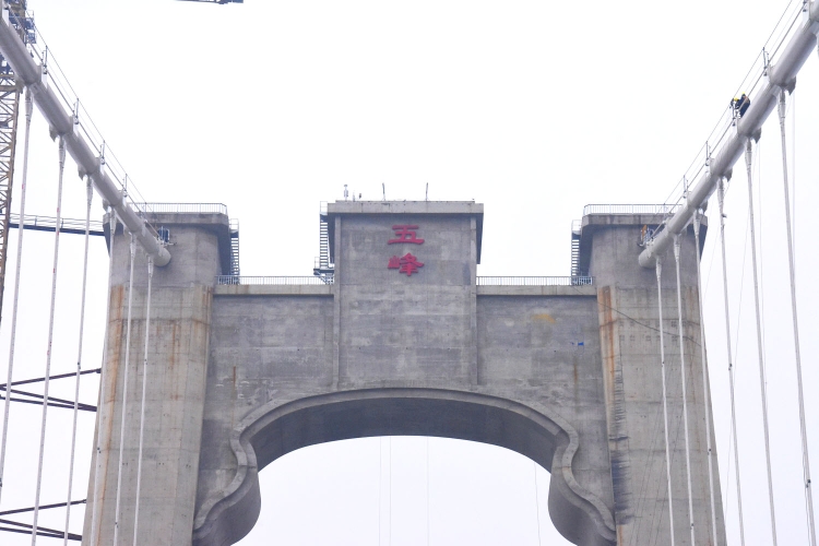 从12月1日起,五峰山大桥进入桥名安装阶段。建设者冒着寒风在200多米高的北端主塔上作业。不日,“五峰山大桥”几个大字将醒目地呈现在主塔上。 季利 程曦 摄