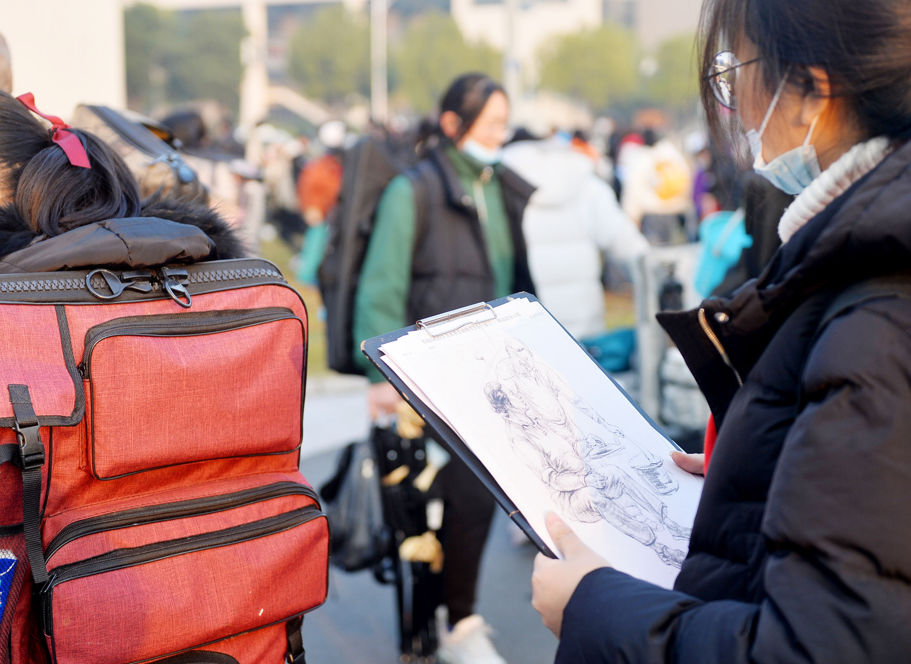 第二场速写考题也有变化。“往年速写题双人组合较多,但今年是两个单人速写的组合。”一位考生回忆,两个单人组合一个人拿着渔网,另一个人挖土,两张单人照片彼此没有关联,考生需要自己组合和判断。