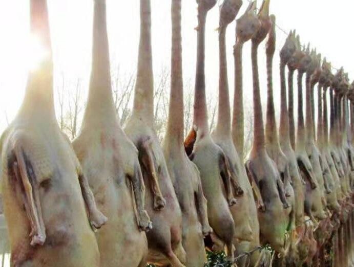 在邵伯古镇东北南渡村,有一户人家咸鹅真诱人。据称,每年要腌几百只,晾晒在河边,形成一道风景线。 “扬州老忙” 摄