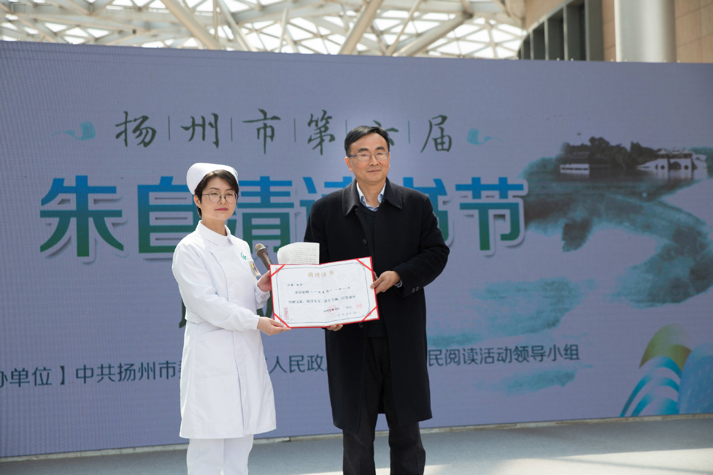 朱军:扬州市图书馆馆长兼党支部书记、研究馆员,2019年1月,当选扬州市十大功臣。2017年4月及2019年9月,分别当选为扬州市劳模、年度人物。