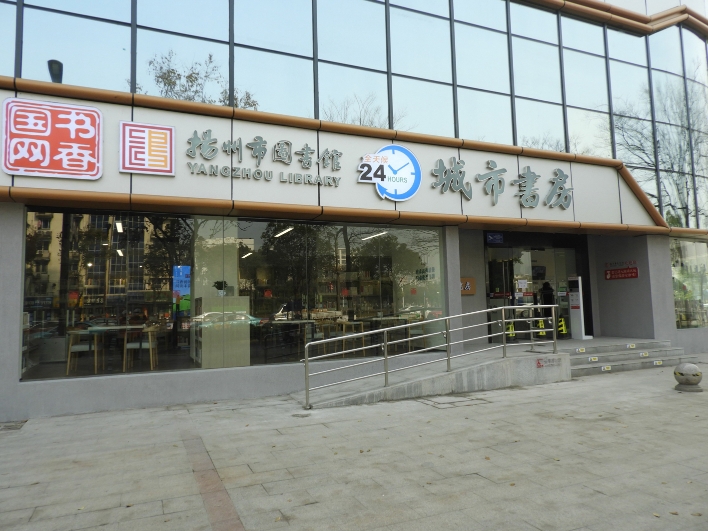 这一城市书房位于文昌路和邗江路交汇处的东南角,已基本打造完成。书房门前不仅有台阶,还有可供残疾人轮椅通行的无障碍通道,方便残障人士前来阅读。整个城市书房呈“L”形布局,正对大门的是服务台,服务台背景写有“城市书房永远明亮 我们的城市就充满希望”的文字。向东拐便来到阅读区,靠墙的书架上摆放着一本本图书,同时有饮用水供应;区域中央和西侧则摆放着桌椅,供读书的市民使用。