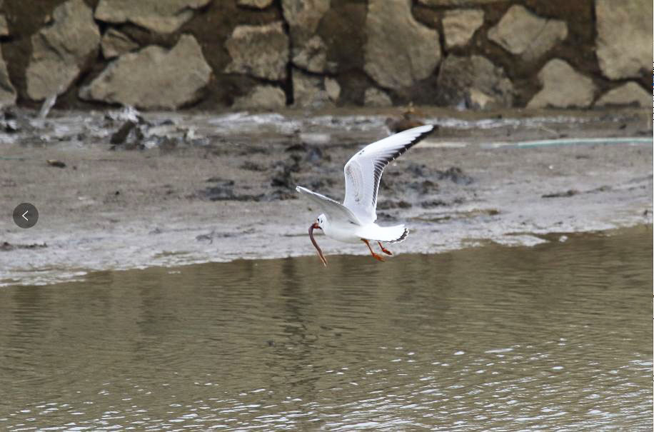 除了成群的白鹭,还有成群的红嘴鸥。杭德泉说,他前后数了几遍,红嘴鸥的数量比白鹭要多得多,“200多只。”昨天下午,他蹲守了2个多小时,拍摄了不少鸟儿的照片,如红嘴鸥捕食水中泥鳅的场景。