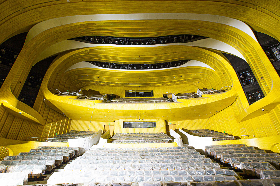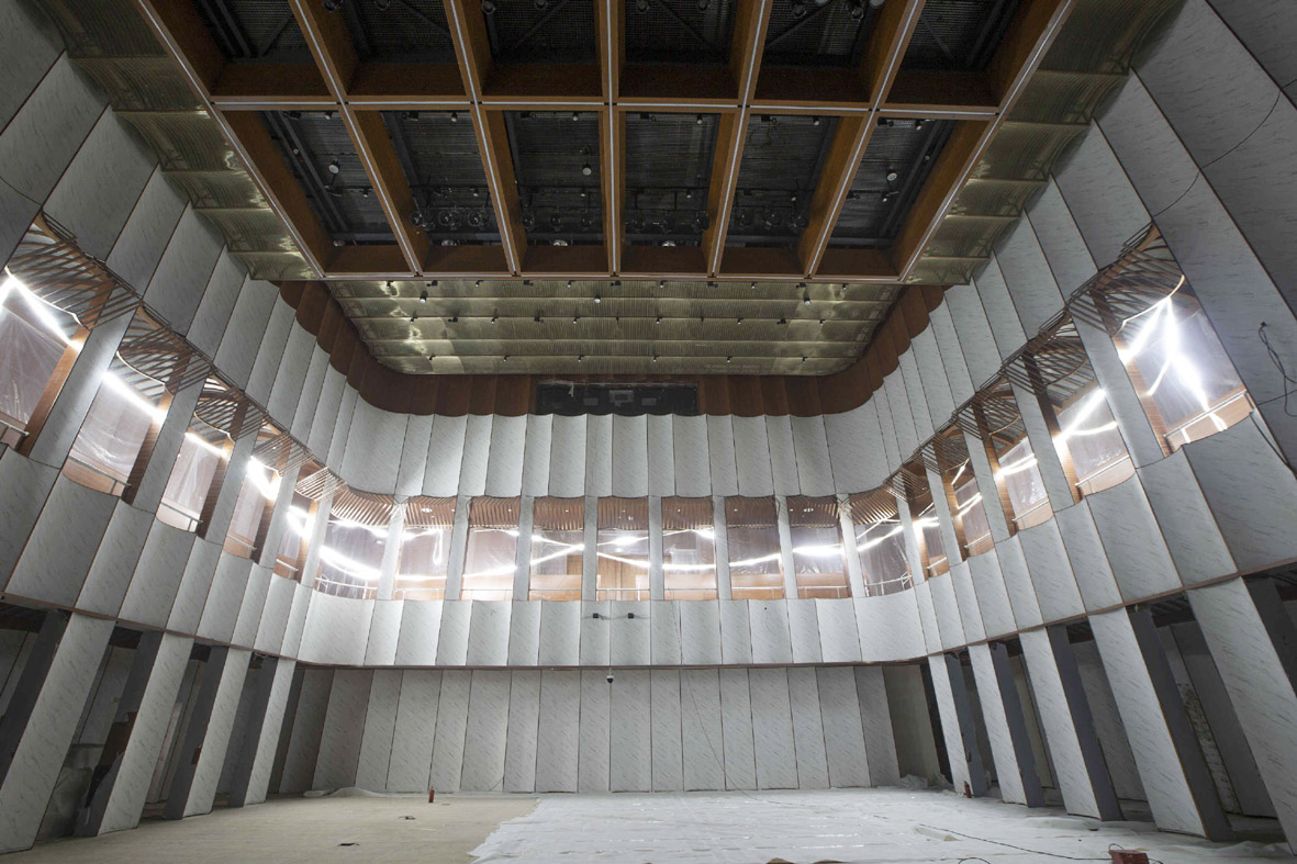 1月19日下午,记者在现场看到,运河大剧院内部的精装、调试工作正在有条不紊地进行。四大主题剧场内,崭新的观众座位整齐排列,舞台空间气势恢宏,后台化妆室、休息室也一应俱全。工程全部完工后,运河大剧院将与周边的双博馆、图书馆、音乐厅、国展中心和扬州职大等实现景观协调、空间融合、功能共享。