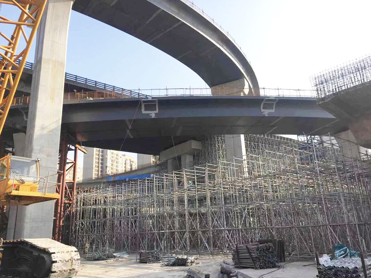 润扬北路互通式立交位于润扬北路快速路和江平路西延快速路交叉口,是扬州市“两廊三轴五区”空间结构形态的重要组成部分。项目南起平山堂西路北侧,北至真州北路东侧,中间依次跨越经圩二路、台扬路、江平路、宁启铁路、蜀冈西路、经九路,主要建设内容包括江平路和润扬路主线高架桥、互通匝道桥及相关附属工程等。项目是连通润扬快速路和江平快速路的枢纽,同时也连接着宿扬高速。项目全线共有39片预制组合箱梁,其中18片箱梁需上跨宁启铁路,架梁期间必须对铁路进行封锁,只能在晚上11时至凌晨3时的 “天窗期”内进行施工。从2020年12月11日开始,经过40天昼夜不停的紧张奋战,截至1月21日凌晨,项目完成了涉铁施工的预制梁架设和桥面系附属工程施工,标志着工程建设取得阶段性胜利,进入最后冲刺阶段。