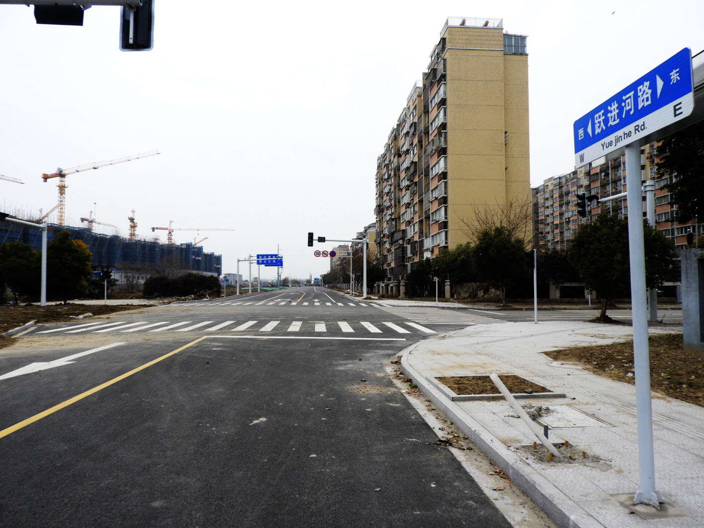 记者昨天在临近新328国道的跃进河路施工现场看到,目前道路主体已基本建成,划线完成,道路标志牌已经亮相,部分交安设施已经安装到位,仅剩下路灯和部分交安设施未安装,整个工程已进入最后的扫尾阶段。