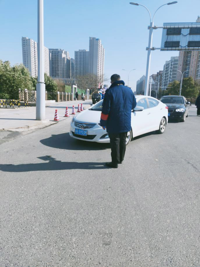 京华城南门,工作人员在地下停车场入口处检查体温和健康码 马燕洁 摄
