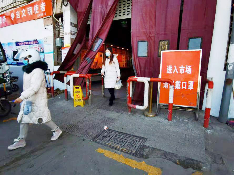 一位卖鱼的商户告诉记者,市场要求商户们一进入市场就要戴好口罩,市场管理人员和社区管理人员随时会过来检查。“从我们自身来讲,也希望大家做好自我保护,毕竟菜场来往的人太多了,保护好自己,也是对家人负责,对社会负责。”