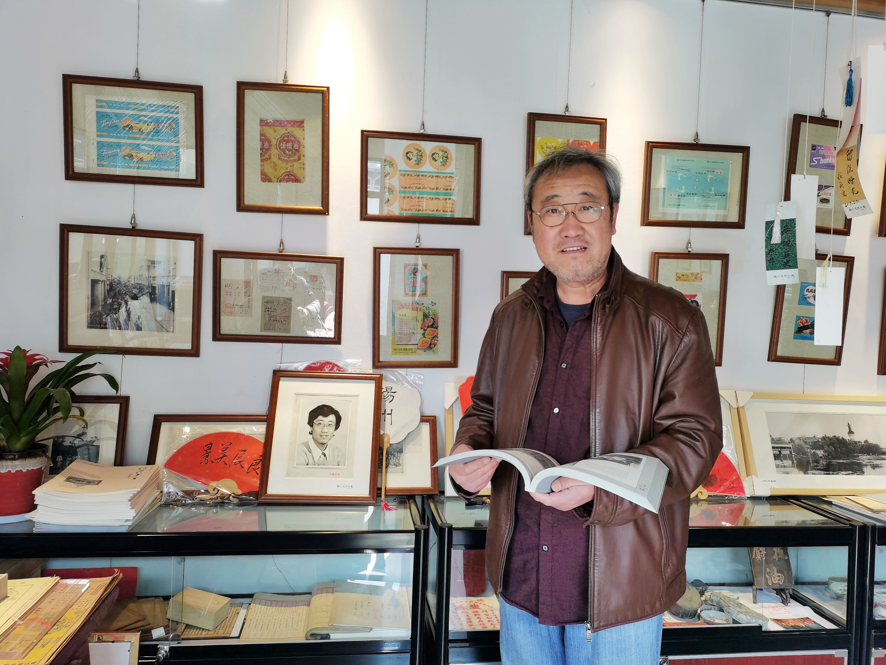 “那是他年轻时在照相馆拍的一张照片,朋友本来帅,照片当然拍得也好,被当时的照相馆放大陈列在橱窗。没想到多少年后,被扬州老照片馆收藏。”崔先生笑着说。