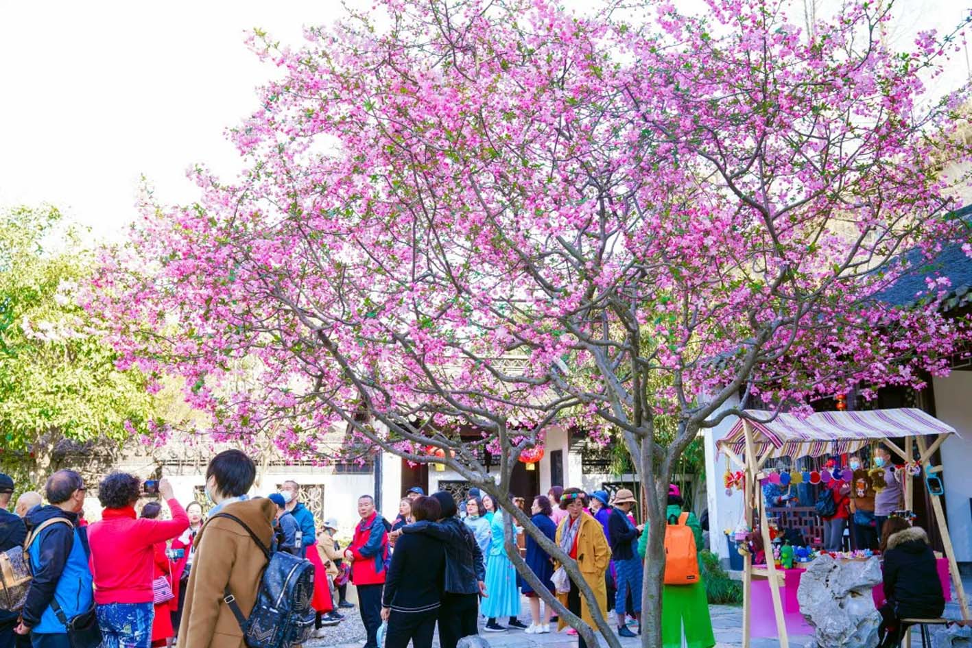 阳春三月,垂丝海棠进入盛开期。这几日,何园景区内的垂丝海棠进入最佳观赏期,远望犹如彤云密布,娇柔红艳,美不胜收。不少市民游客慕名而来,拍摄下这一美景。