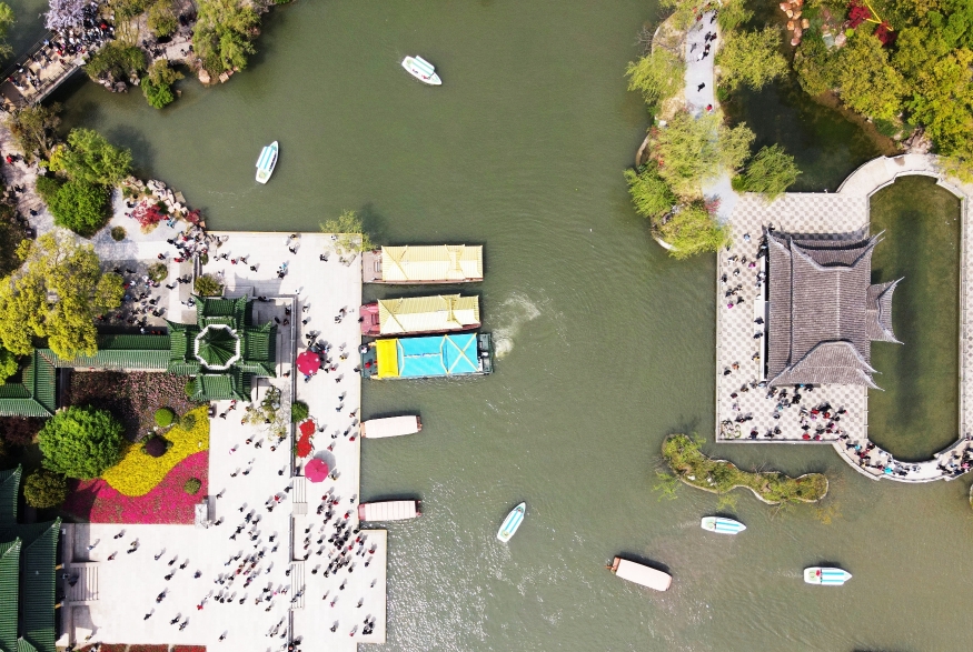 4月11日,瘦西湖风景区处处鸟语花香,桃红柳绿,呈现出一派勃勃生机,众多游客来到户外,在明媚的春光中踏青游玩,亲近自然,享受人间四月天的美景。 孟德龙 摄