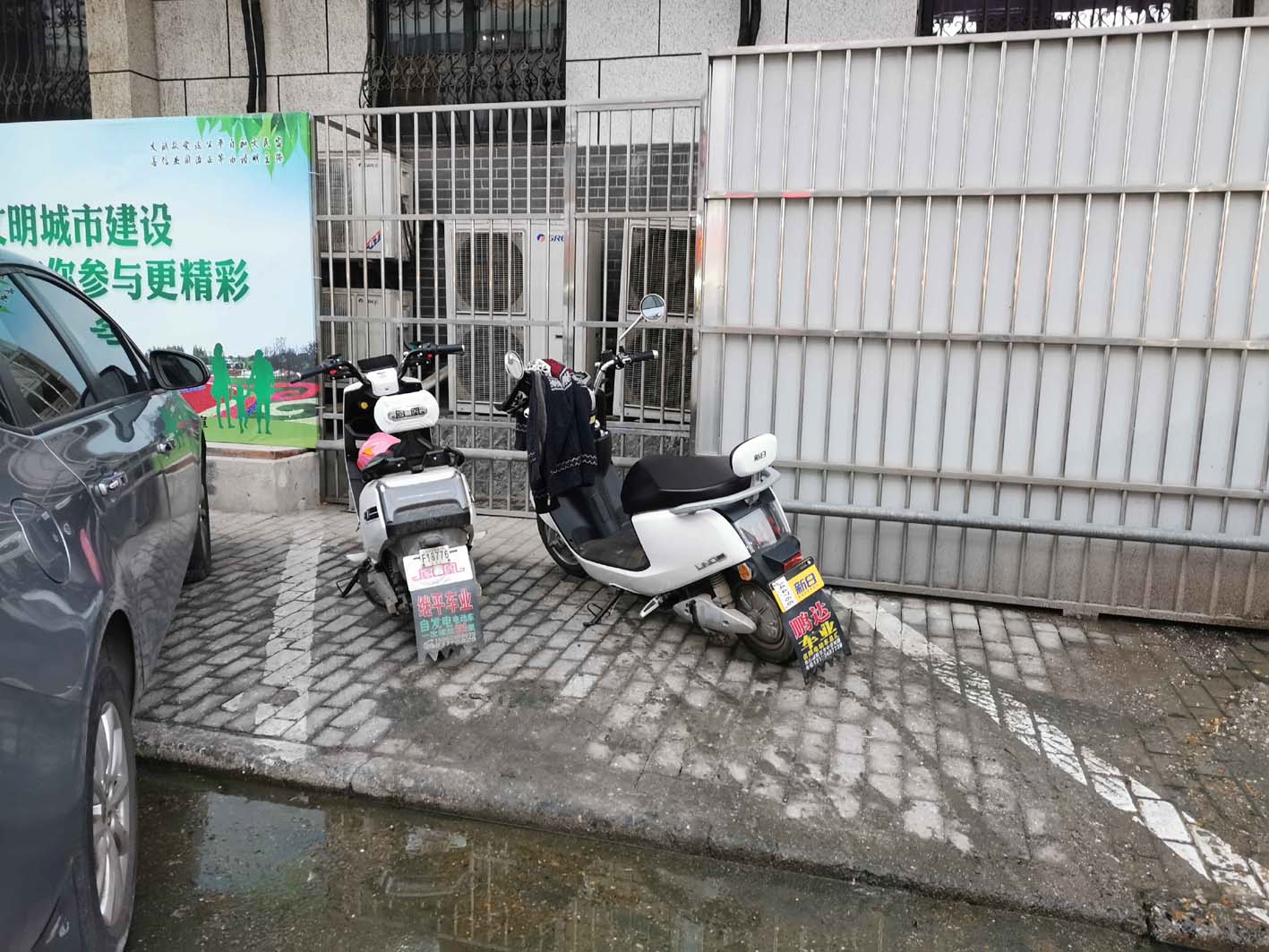 摩托车专用车位牌霸占公共停车位。
