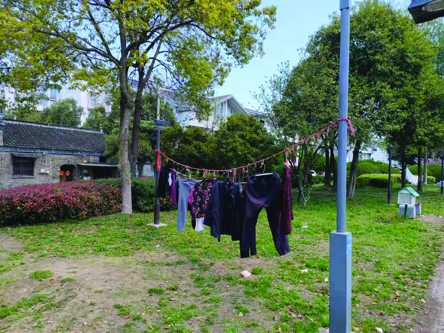 衣服晒在绿化带里有伤大雅。