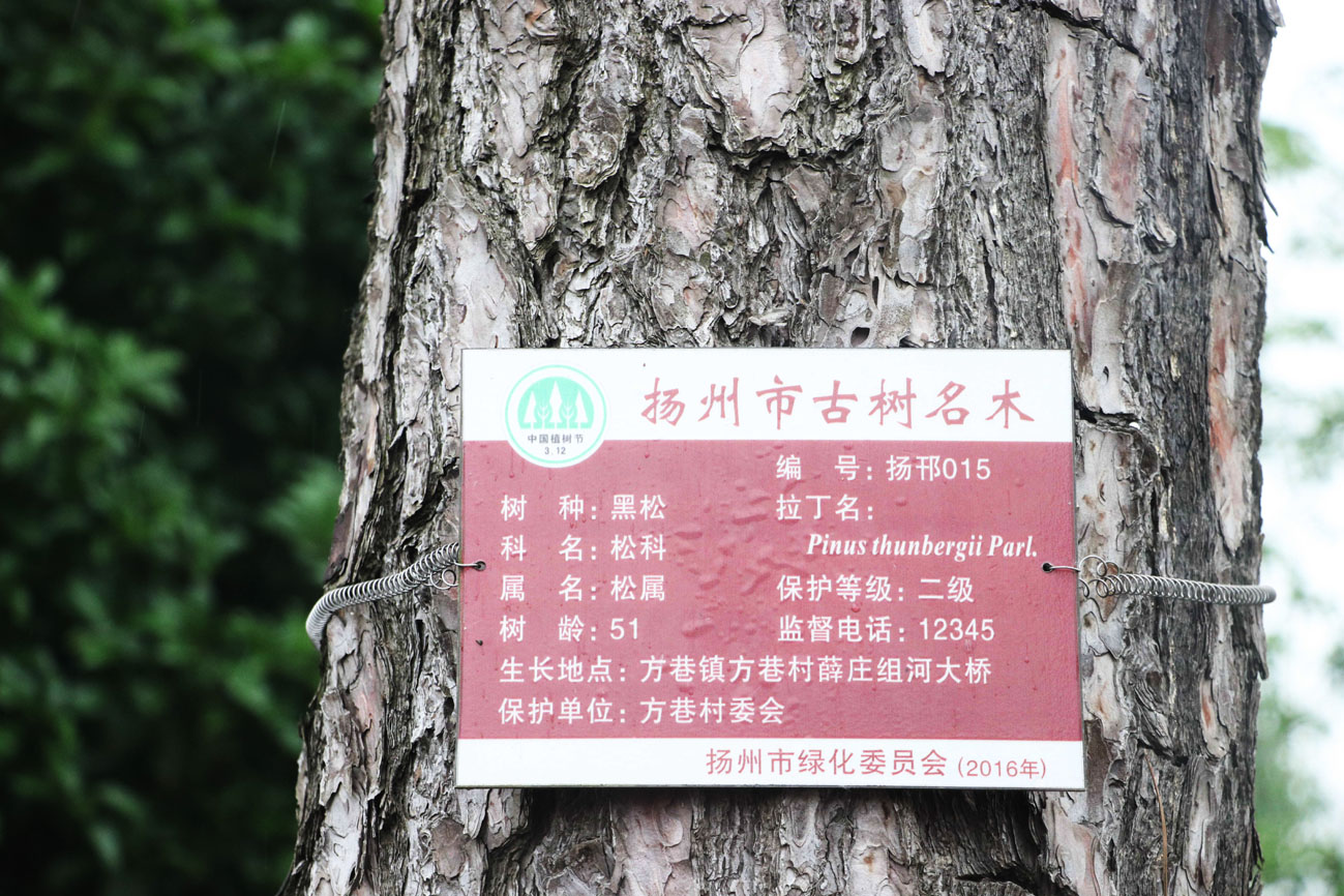 方巷镇的“将军松”,由张爱萍将军手植,是扬州的名木。根据树上悬挂的古树名木保护牌计算,这棵名木至今已有56年树龄。