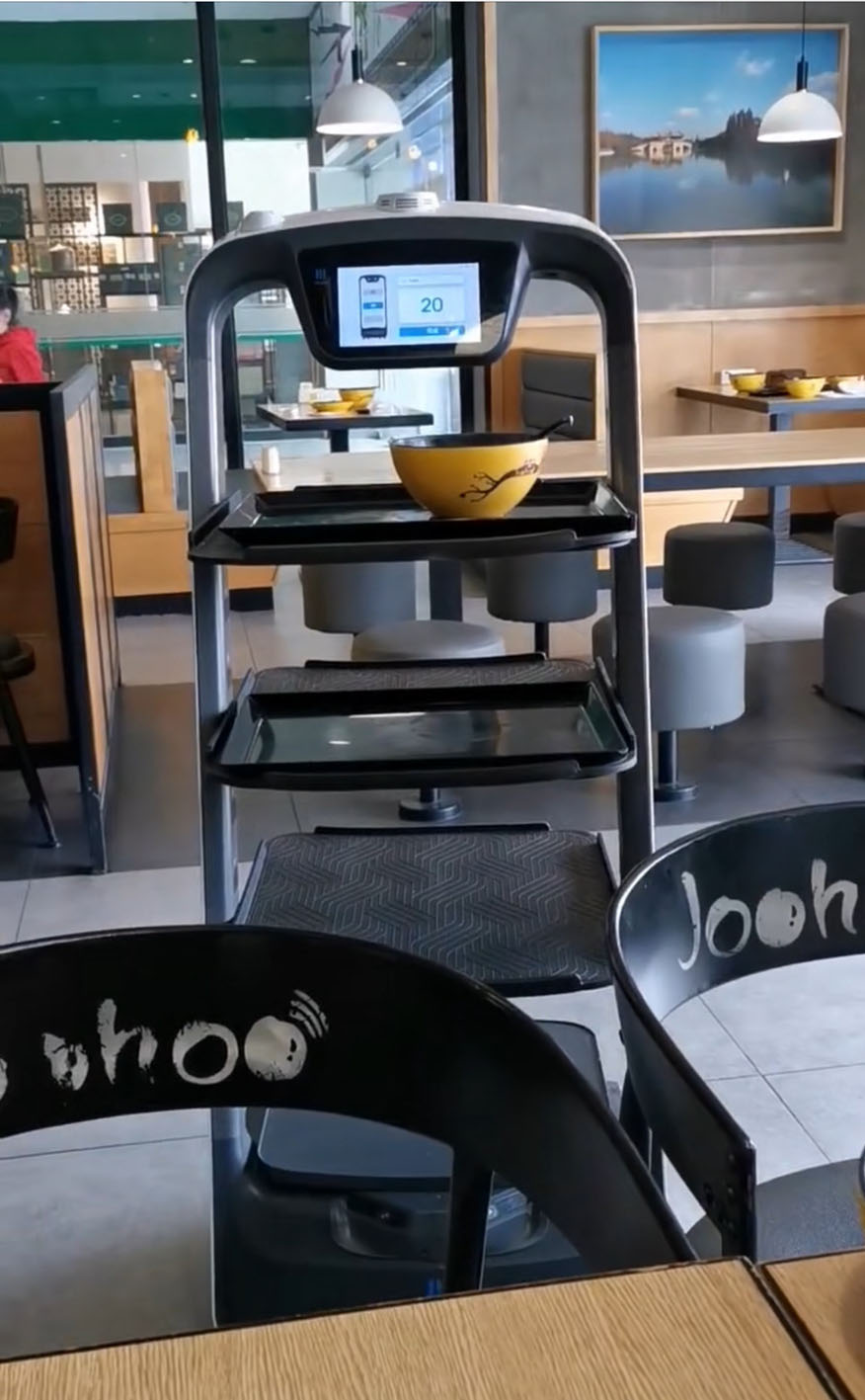 “不需要服务员端菜,厨房直接将菜品放置在机器人托盘上,选择桌号,机器人就会立即为顾客配送。”该豆浆店工作人员介绍,新购置的机器人,虽然上岗没多久,却很受顾客欢迎。