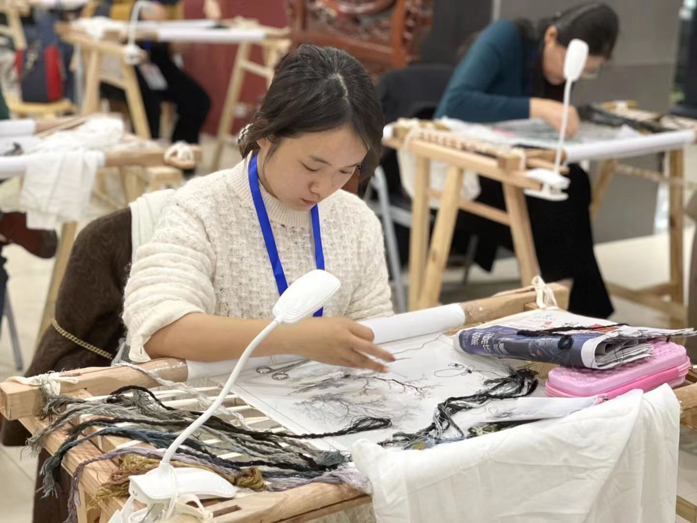 而在赛场另外一边,人工智能应用技术、云计算、网络安全等新型技术赛项正在激烈进行。扬州剪纸、扬州刺绣、红木雕刻等项目则在486非遗集聚区举行。记者在486看到,不少比赛项目的主题与人民美好生活相关。
