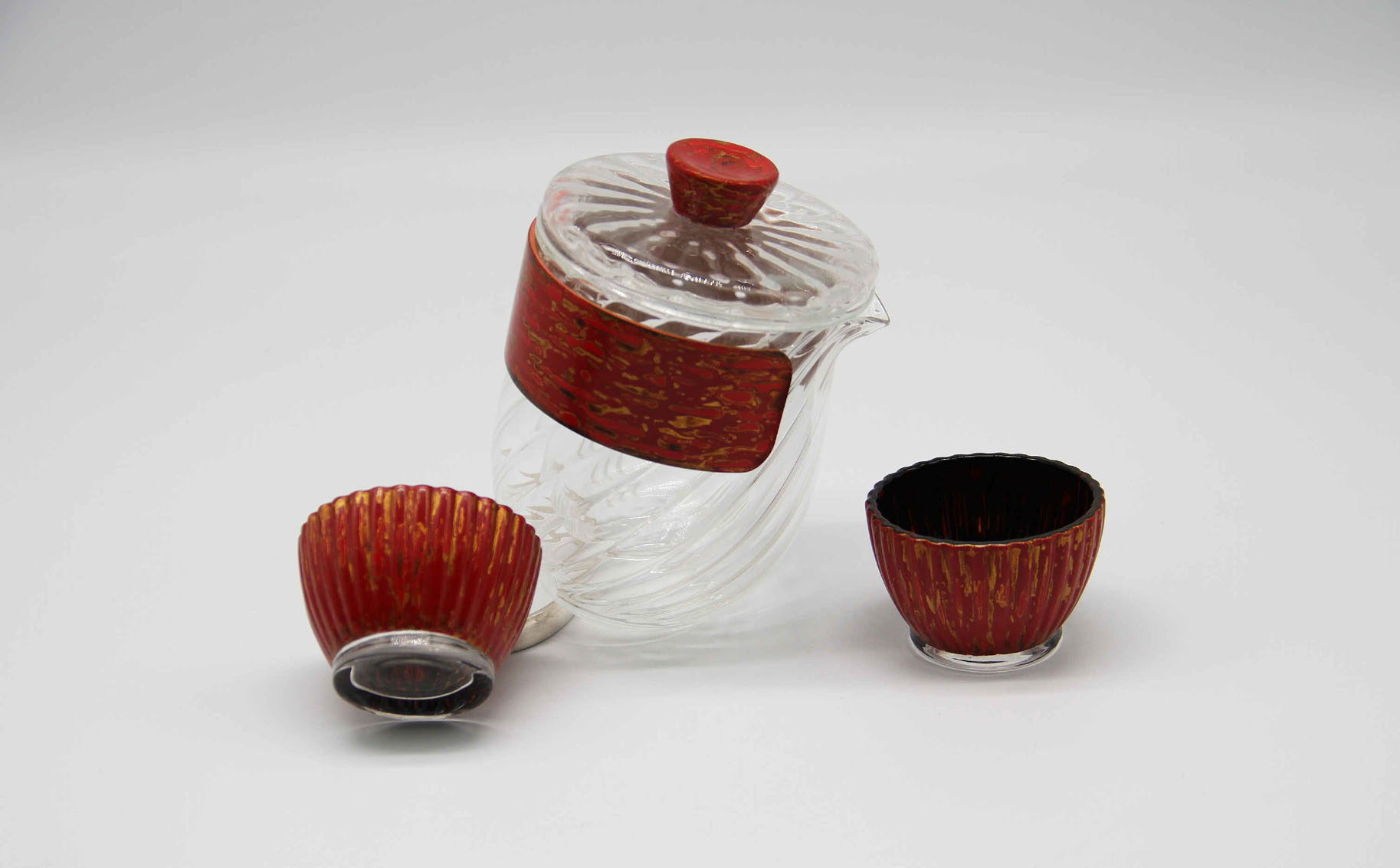 红金斑犀皮漆琉璃茶具 琉璃工艺与漆器工艺相结合,以琉璃为主体,细节处点缀漆器工艺
