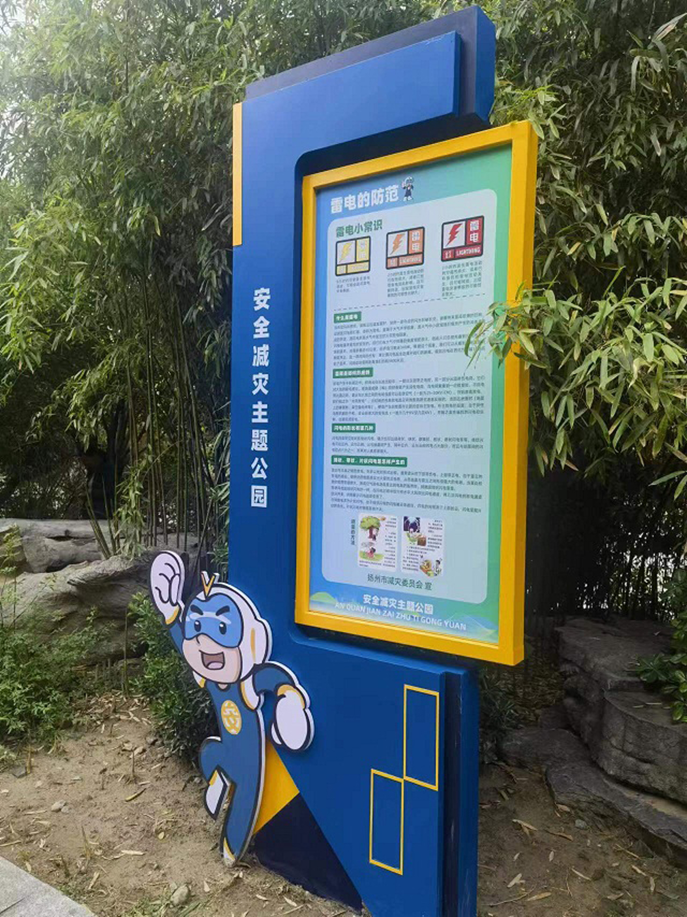 “蝶湖公园是市减灾办、经开区减灾办共同打造的安全减灾主题公园。”扬州经开区安委办专职副主任丁杰介绍,公园周边业态丰富、住户集中、人流量大,非常适合打造安全减灾宣传的固定阵地,“我们选用通俗易懂、贴近百姓生活的语言和形式,展示新时代防灾减灾救灾理念,提高群众安全减灾能力。”