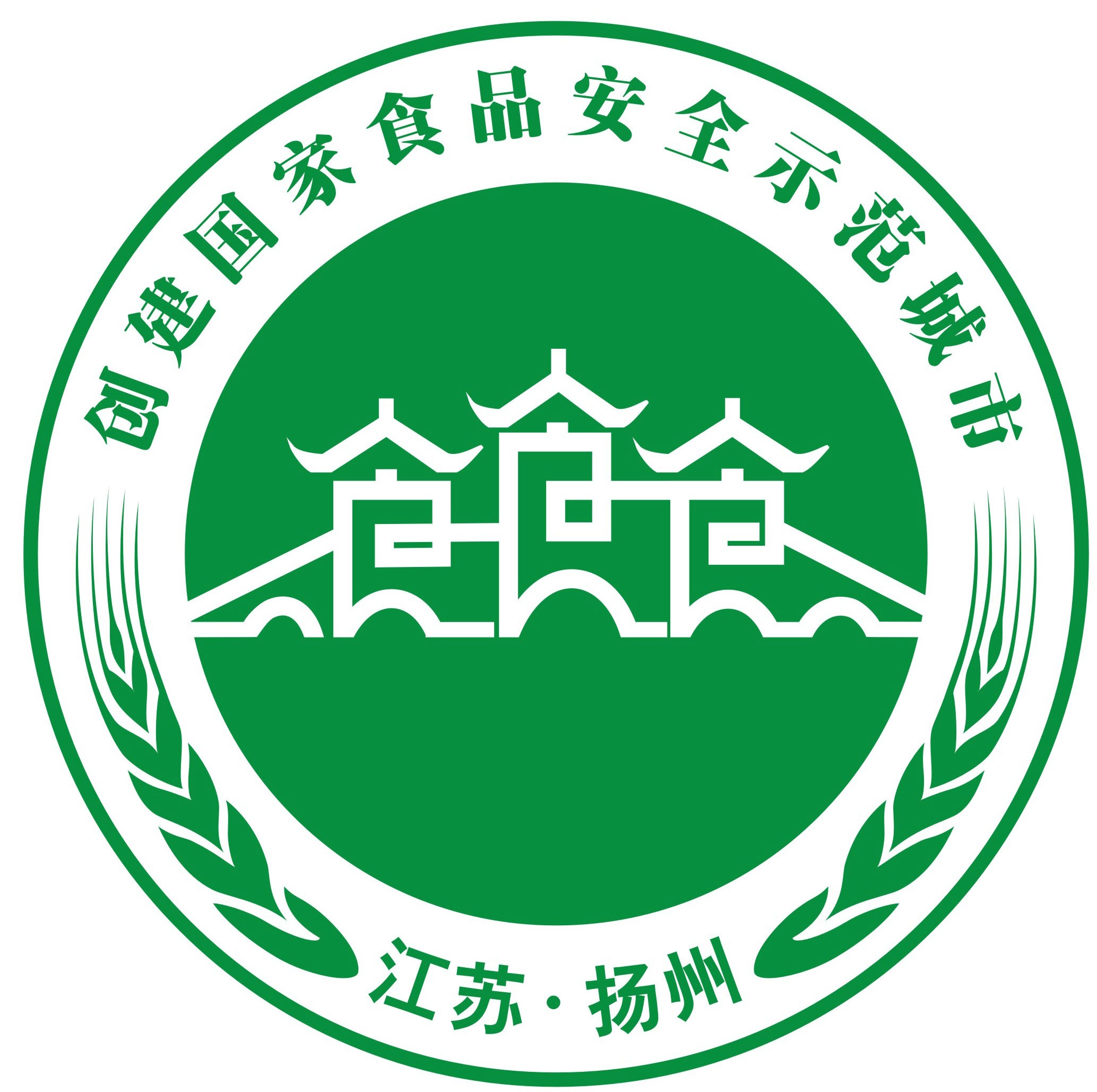 据市市场监管局食品安全协调处处长张华介绍,此次国家食品安全示范城市创建主题标识以绿色为主基调,象征自然、安全和环保;以扬州市地标建筑五亭桥为设计元素,将三个“食”字巧妙融合,呈现出质检印章和餐盘的形象,暗含守护食品安全之意,突出了创建国家食品安全示范城市的核心属性。此外,创建口号为“扬州美食闻天下,食品完全惠万家”。